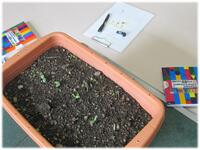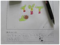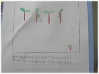 今日は、プランターに植えていたひまわりの種が発芽した様子を絵に描き、自分が気が付いたことをまとめていました。