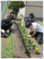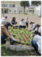 PTAのボランティアの方たちによる花壇作業が行われました。
