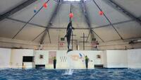 アシカのショーやアザラシの餌やりの見学をして、これからイルカのショーを見学です。アシカとアザラシの違いも教えてもらいました。