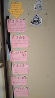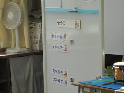 小学校の学級で一生懸命に掃除に取り組んでいる子どもたちの姿がありました。ホワイトボードには、掃除でするべきことが示されていて、自分の役割をしっかりやろうとする子どもの姿にヘルパーさんからも「えらいねえ」と声を掛けられていました。