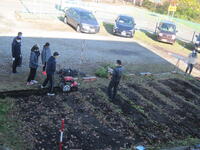畑は、各グループが分担しながら管理していますが、今日は木工グループの生徒達が収穫が終わった畑の整理をしてくれました。