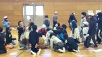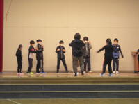 中学校では3年生が修学旅行に行っている間に合同レクリエーションを行っています。進行やチーム名の決定など、できる限り子どもたちの手作りで行っています。ドッヂボールでは、チームごとに集まって話し合ったり、ルールを少しずつ理解したり、チームのメンバーと協力し合いながらゲームを楽しんだり、たくさんの学習内容がつまっています。みんな、いい顔して楽しんでいました。