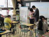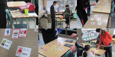 中学校では明日、市内のスーパーマーケットでの買い物学習に向けて、模擬買い物学習を行っていました。子どもたちはいくつかの教室を訪ねて、店員さんに扮した教員からお菓子などを買い、集合場所の教室に集まるという内容です。集合場所の多目的室に戻ってきた子どもたちの表情が満足げであり、明日の学習につながる予感がします。