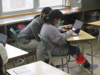 ふるさと学習の一環として取り組んでいるアイヌ文化学習の成果を学芸発表会で披露することになっています。午後からの総合的な学習の時間(中学年)では、アイヌの踊りの練習をしたり、タブレットを用いて「ウポポイ」のホームページを閲覧しイメージを広げたりする学習に取り組んでいました。