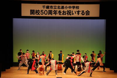 本日、ご来賓並びに保護者の皆様のご臨席を賜り、開校五十周年をお祝いする会を執り行えましたことを、心より感謝申し上げます。また、千歳市長 山口 幸太郎 様、千歳市教育委委員会教育長 佐々木 智 様からお祝いをお言葉をいただき、学校関係者一同喜びを分かち合うことができました。