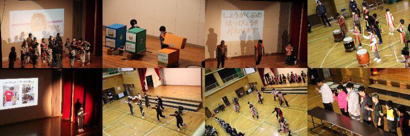 今月20日に予定している学芸発表会に向けた学習か行われています。低学年の子どもたちはオープニングでプログラムの紹介をします。この紹介の中に、言葉、絵、順番の組み合わせを理解したり、わかりやすく相手に伝える方法を考えたりと教科等横断的な学びを仕組んでいます。また、中学年の子どもたちは、当日発表するアイヌの踊りをステージ上で練習していました。