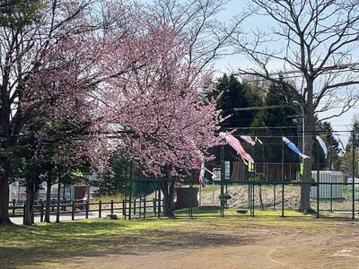 北進小中学校のグラウンドの桜も