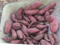今日、小学校のいくつかの学級で、さつまいもの収穫をしました。これまでにミニトマトやスイカの収穫を終えていますが、これが今季最後の収穫になります。大きなさつまいもがたくさん収穫できました。