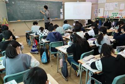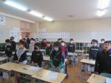 勇舞中の先生が6年生の授業を参観しました。「みなさん、立派ですね。中学校で待っています!」