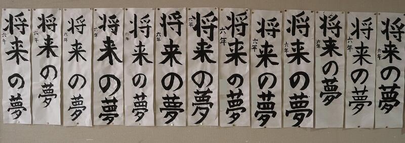 学級懇談日にもご覧いただいた校内作品展も本日が最終日でした。2月は、2年生の図工、5年生・6年生の習字の作品が掲示されていました。