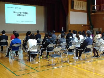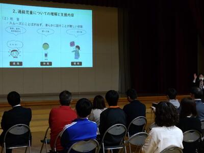「ことばとまなびの教室」の担当者から、「困っている子の理解と配慮ついて」というタイトルで通級指導教室に通う児童についての理解を深める研修を行いました。学級担任が実際に通級指導の様子を見ることは難しいため、たいへん貴重な学びの機会となりました。