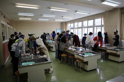 5年生が4年ぶりに調理実習をしていました。「青菜のおひたし」を作る学習でした。家庭科室の使い方や、道具の安全な使い方を確認しながら、ほうれん草を茹でる実習を行いました。茹で時間をきっちり測り、流水で冷やしたらとてもいい色に。試食の時には「おいしい~」と口々に言っていました。自分たちで作ったお料理は最高ですね!