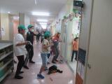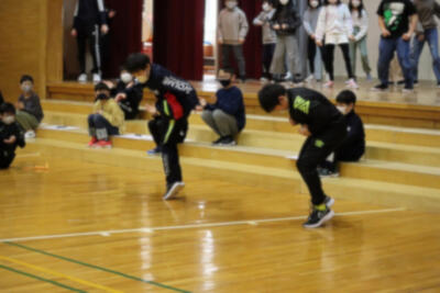 みんなよく振りを覚えていて、ぐるぐる手を回したり、腰を振ったり、とてもかわいい踊りです。担任の先生方でじゃんけんをして発表する順番を決め、1クラスずつ踊り、他のクラスの友達に見てもらっていました。そろそろグラウンドに出て練習かな?