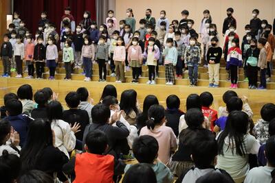 修了式では、あいさつ、なかよく、ノート名人、感染症対策「あいてますか」の4つの約束について振り返りました。笑顔と思いやり、頑張りがあふれる一年となりました。