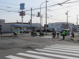 毎朝、地域の皆様や交通指導員の方が、子ども達が安全に登校できるよう見守りをして下さっています。要所要所の交差点に立って、横断歩道を安全に渡るよう誘導したり、子ども達と挨拶を交わして下さいます。そのおかげで、安心して登校することができています。