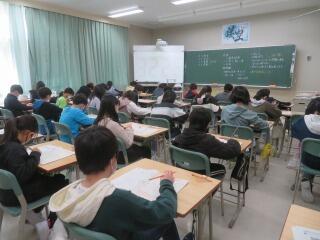 今日は、小学校6年生と中学校3年生が受ける「全国学力・学習状況調査」がありました。2・3時間目の時間に国語と算数のテストに挑戦し、4時間目には質問紙調査に取り組みました。決められた字数の中で読み取ったことを書いたり、解き方を説明したりするなど、難しい問題にも粘り強く取り組んでいました。