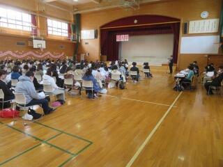 離任式では、退職、異動される先生方とのお別れをしました。これまでお世話になりました。ありがとうございました。