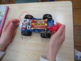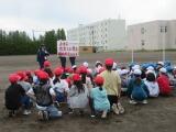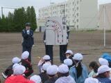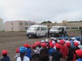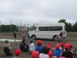 市の交通安全指導員の方が来てくださり、グラウンドで3年生に交通安全教室を行ってくれました。ダミー人形を使った衝突実験では、時速30キロでしたが当たった時の衝撃や音に皆びっくりしていました。また、車からは見えない「死角」や車が曲がる時の「内輪差」なども教えていただきました。