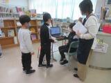運動への興味・関心を高め体力向上を目指して、多目的ホールに「パワーアップスタジアム」という取組を始めています。反復横跳びや立ち幅跳び、長座体前屈ができるコーナーを設けたり、握力計を使って自分の握力を計ってみたりできます。