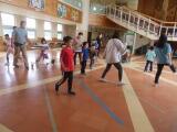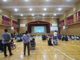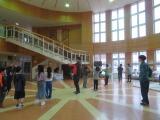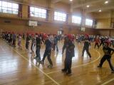 体育館で1年生が5クラス揃って、運動会のリズムの練習をしていました。