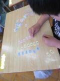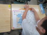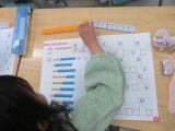 大きなかずの学習をしている2年生です。10のまとまりや100のまとまりがいくつかるか調べ、100の位を学んだり、数字で書く書き方と漢字で表す方法と、どちらも書いたり読んだりできるようにする活動をしていました。