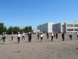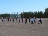 2年生はリズムの練習でした。途中の隊形の変化も覚えながら、アップテンポの曲にのって元気に踊っていました。