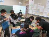 小樽市のガラス工芸について学習しています。小樽市は今年度の修学旅行の自主研修の場所でしたので、興味津々の様子で調べていました。