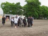 練習があります。グラウンドでは、競技や表現の練習もしていますが、各種目での移動の仕方や並び方などを覚える必要があります。すばやく、しっかり動くことができるように説明を聞いています。