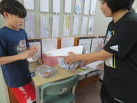 今日は、卒業する6年生とのお別れ会の準備をしていました。みんなで「くじ」の景品作りです。