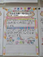 各教室をのぞいてみると、おうちの方に向けてメッセージを書いたり、タブレットに「運動会で頑張りたいことベスト3!」を書いて交流しているクラスがあったり、壁に目標を書いて掲示したりしています。運動会に向けての気運がどんどん高まっています!