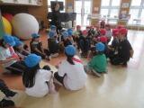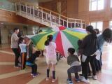 多目的ホールで、音楽に合わせながら楽しそうに体をめいっぱい動かしていました。軽快なピアノに合わせてスキップをしながら動き、ピアノが止まったら動きもストップします。バルーンを広げて風を感じたり、体や五感をたっぷり使い、笑顔であふれる素敵な時間となりました。講師の先生、お忙しい中ありがとうございました。