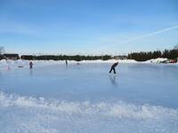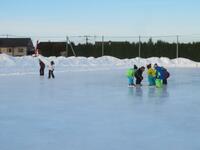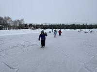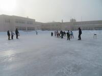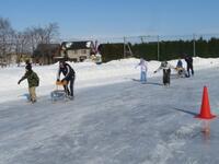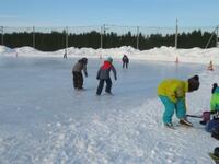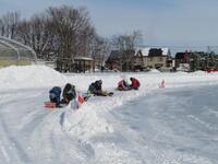 2日前にようやくできたリンクですが、昨日は大雪で、業者の方が何度も除雪をしていました。おかげで今日はコンディションのいい中でスケート学習をスタートすることができました。
