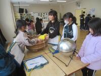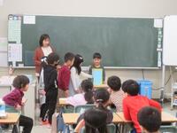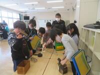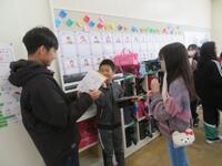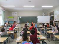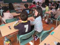 2年生が3年生の教室に行き、どのように学習をしているのか見学をしていました。3年生は理科の「じしゃく」の学習で、実験する前に予想をたて、グループで協力して調べる活動をしていました。周りで見ている2年生に「やってみていいよ」と声をかけて、磁石とクリップをつけさせてくれていました。2年生はまだ理科や社会の学習がないので、とても興味深そうに見ていました。