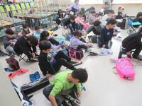 昨日のことになりますが、1年生が各教室でスケート靴の紐をしばる練習をしていました。冬休み中に家で練習してきた子が多く、「家でやってきたからだいじょうぶ!」「20回も練習したんだよ」などと、自信をみせている子がたくさんいました。ご家庭で支援してくださったことに感謝いたします。