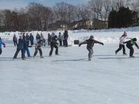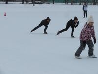 メールで保護者の皆さんに連絡しましたら、さっそく練習に来ているご家族や友達がいます。学校の授業に備えて、メールを見て少しでも練習をしようと来てくれました。中には、一緒に滑っているお父さんやお母さんもいます。