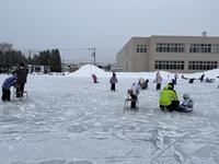 1・2時間目に2年生が、3・4時間目にあすなろ学級が学習をしました。紐結びに少し苦戦しましたが、それでも去年よりずっと上手になっていて上手です。膝を曲げて滑る練習をしたり、氷の上を歩いたりしながら、みんな一生懸命頑張っていました。