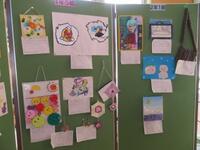 中休みに多目的ホールに行ってみると、冬休みの作品を友だちと見ている子がたくさんいました。1~3年生の作品が17日(水)から始まっていて、今日の中休みで終了しました。明日から高学年の展示が始まります。