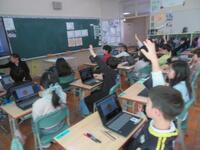 電子黒板に大きく写したり、実際に動かして見せたり、教室内で動きながら近くで見たり、質問や感想タイムをとったり、それぞれの学級で工夫しながら、友だちの作品を興味深く見合っていました。