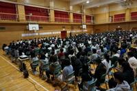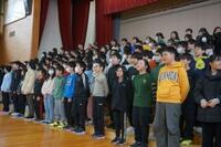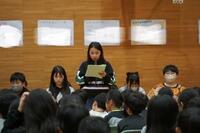 昨年度までは全校で集まることができずにいましたが、今年は全校で集まることができました。5年生以下の皆さんが拍手で迎える中、6年生が入場しました。4・5年生の書記局の進行で会が始まりました。