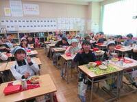 給食の時間に教室をのぞいてみると、みんな美味しそうに笑顔で食べていました。