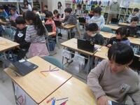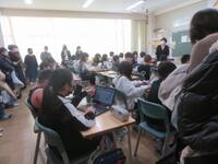 道徳科の学習では、家族のことをテーマに考える学習を進めていました。自分の経験や生活に置き換えて一人一人じっくり考えています。タブレットを使って自分達の考えを共有し、友だちの考えから新たなことを気づいたり、自分の考えに付け加えたりしていました。