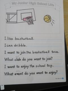 「I want to join~」では、「art club」「volleyball team」や「school trip」「culture festival」などと、とても上手に説明していました。