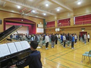 6年生の卒業まで、あと10日あまりとなりました。体育館での練習では、一つ一つの動きについて確認していました。歌声がとても素敵で、心に響きます。