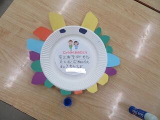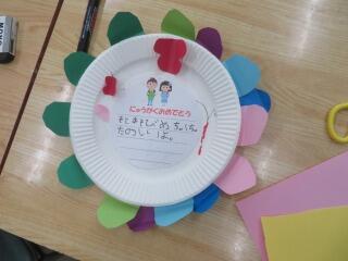 「きゅうしょくはとってもおいしいよ。いっぱいたべてね。」とか、「外あそびはめっちゃたのしいよ。」などと、かわいいメッセージがたくさん書かれていました。一年でとっても成長しましたね!
