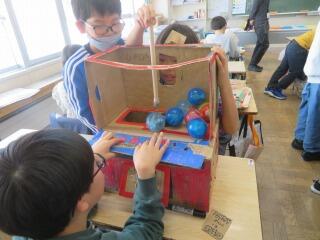 3年生の理科の学習の最後は、電気や磁石の性質について、調べる活動をしながら学んでいく内容でした。性質をひととおり学んだあと、その性質を利用したおもちゃをつくる計画をたて、実際につくって遊ぶという時間があります。みんな素敵な発想で思い思いのおもちゃをつくり、友だちと楽しそうに遊んでいました。