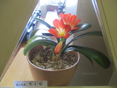廊下をゆっくり歩くと、「君子蘭」が校長室のドアの窓から顔をのぞかせています。とっても素敵に咲いて誠実に子供たちを見守ってくれています。