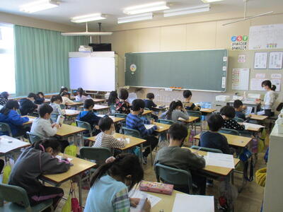 国語「一つの花」、算数「角の大きさ」、理科「天気による気温の変化」の学習をしています。3年生よりも難しい内容の学習に集中して取り組んでいました。