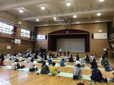 放課後には、体育館で、深い理解を促す中心発問やねらいへの到達度について、子どもたちの発言や様子の見取りから検討をしました。助言者からアドバイスもいただき、よりよい道徳の授業の在り方について、研修することができました。