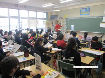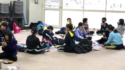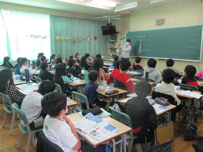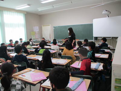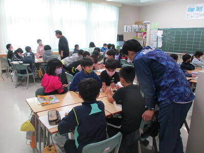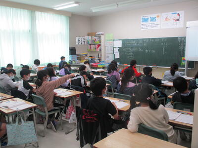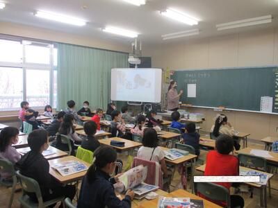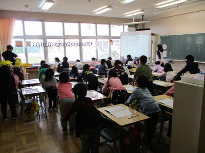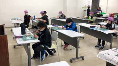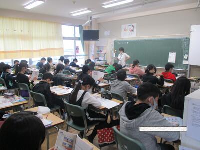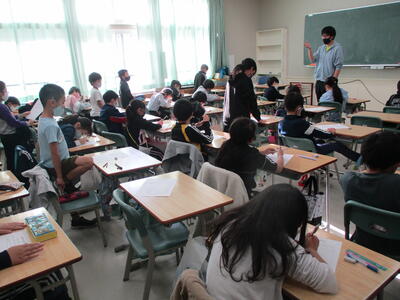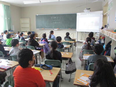 社会科の「ごみのゆくえ」の学習で、美々にある環境センターに行きました。最初に説明を聞きました。わかったことをたくさんメモを取っています。興味津々で環境センターの方に質問をしていました。