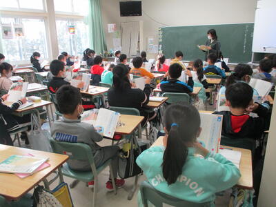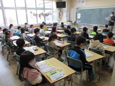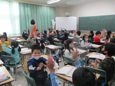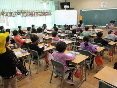 認定こども園「おひさま」のお友達が1年生の授業見学に来てくれました。